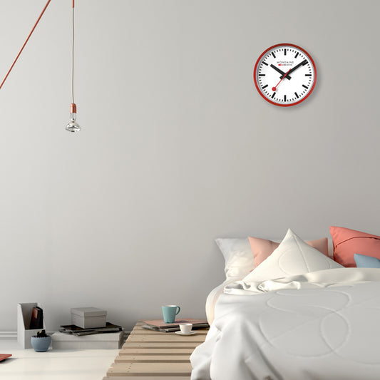 Mondaine Stationsklok alu - rood 25 cm - Mondaine A990.CLOCK.16SBC Swiss Railways Clock
