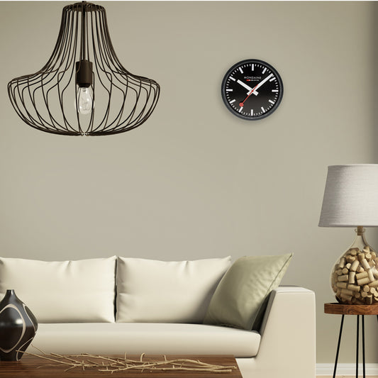 Mondaine Stationsklok alu - zwart 25 cm - Mondaine A990.CLOCK.64SBB Swiss Railways Clock