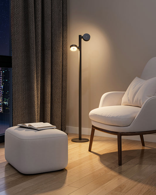 Sompex | vloerlamp RONDA| Dubbele lampen | Zwart | oplaadbare vloerlamp|