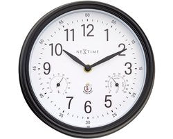 Buitenklok Nextime dia 23,5cm Jasmine met thermo- en hygrometer cijfers, zwarte rand witte wijzerplaat plastic