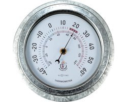 weerbestendig. De thermometer is robuust en van metaal en met Ø 22cm past hij